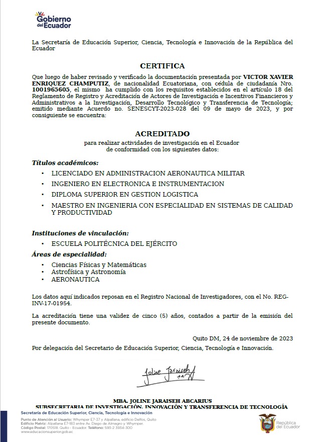 Licenciado en Administración Aeronáutica. ESCUELA POLITÉCNICA DEL EJERCITO ESPE