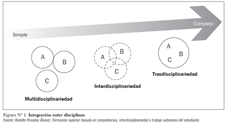 Interdisciplinariedad: Nivel medio donde la cooperación entre disciplinas conlleva un enriquecimiento mutuo y una transformación de conceptos y metodologías..