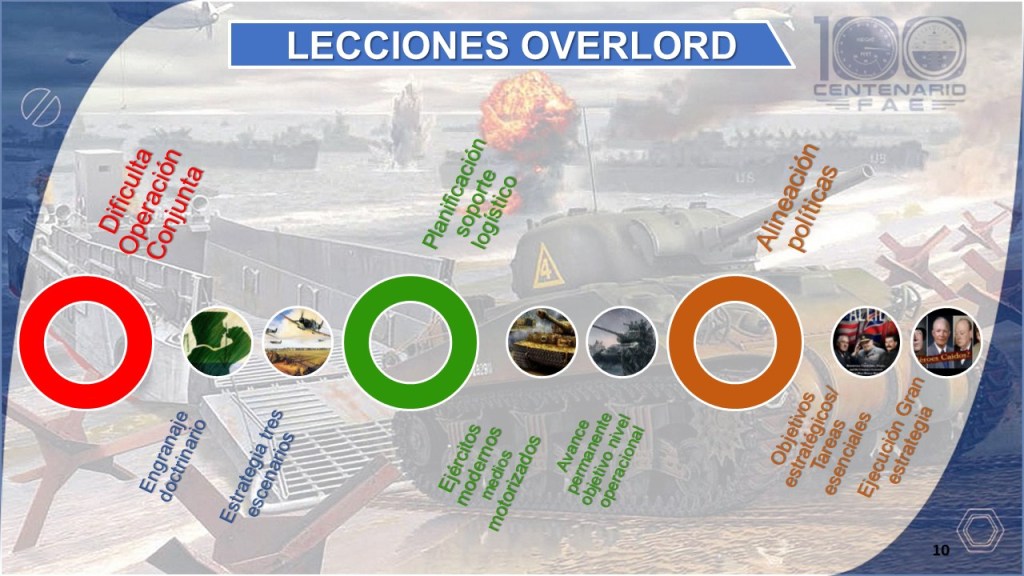 Finalmente se debe manifestar que todas estas lecciones, hicieron posible la alineación de una política multinacional de guerra aliada, al empleo conjunto de las fuerzas militares en los tres escenarios y contar con una planificación y soporte logístico inmejorables, alcanzando el empleo del poder militar para la consecución del estado final deseado en la Operación Overlord.