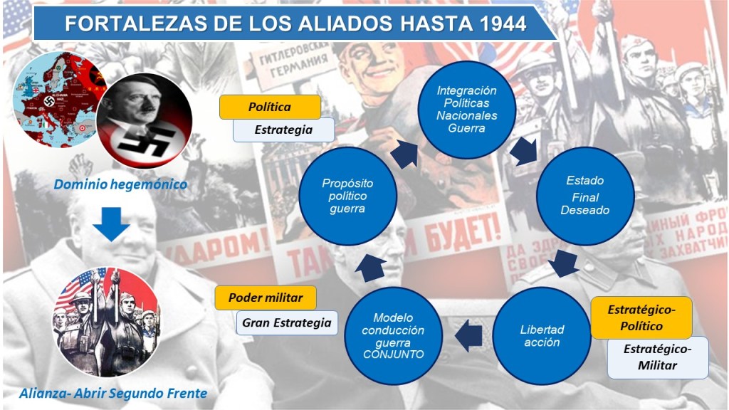Consecuentemente y luego de enunciar las fortalezas a nivel estratégico político y estratégico militar; es importante destacar que la mayor fortaleza de los países que conformaron la Alianza, fue el grado de voluntad política alcanzado por sus líderes, para llevar a cabo la Operación Overlord y definir un objetivo único y determinante, para enfrentar a un enemigo mortífero; rescindiendo cualquier divergencia que caracterizara las administraciones nacionales de sus países, conllevando al éxito de la Operación y al cumplimiento del Estado Final Deseado por los Aliados.