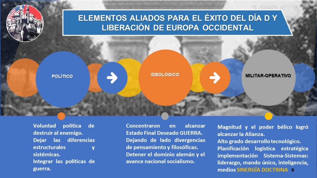 Complementando el análisis es necesario determinar los elementos políticos, militares, ideológicos y operativos de la alianza, para alcanzar el éxito en las operaciones conjuntas del día “D”, a continuación, un breve análisis de los aspectos más relevantes: