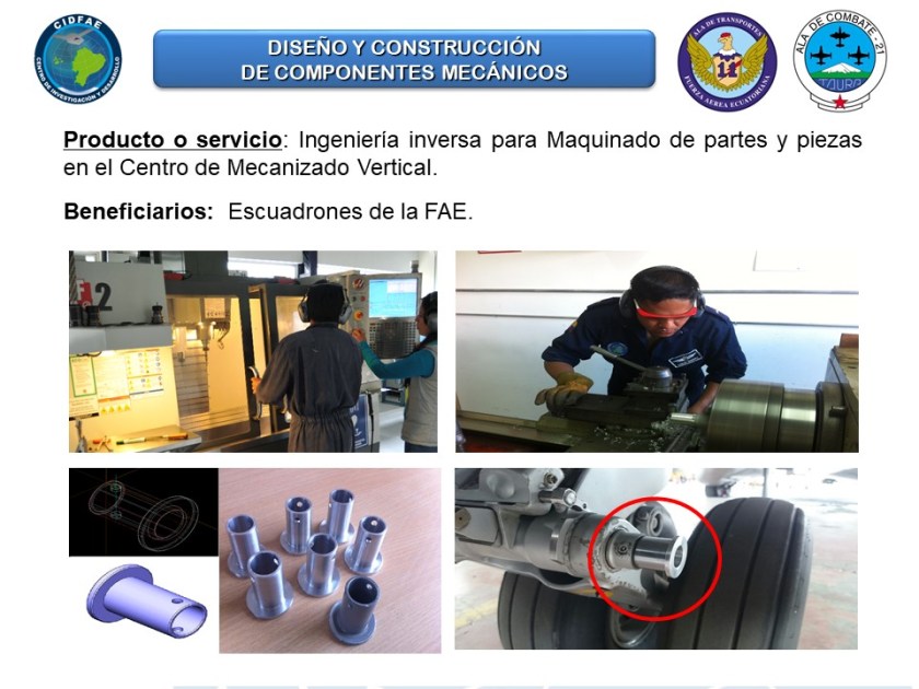 - Proyecto para incrementar la cultura aeronáutica, difundiendo la trayectoria del centro de investigación y desarrollo de la fuerza aérea ecuatoriana, en el campo de la investigación, desarrollo e innovación aeroespacial.