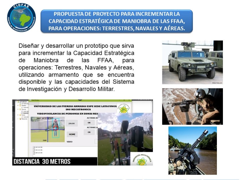 - Proyecto para el diseño e implementación de un prototipo que provea seguridad y capacidad de disuasión, a través de la integración y automatización de la ametralladora MINIGUN GAU 2b/a y/o browning m2 en un vehículo táctico.