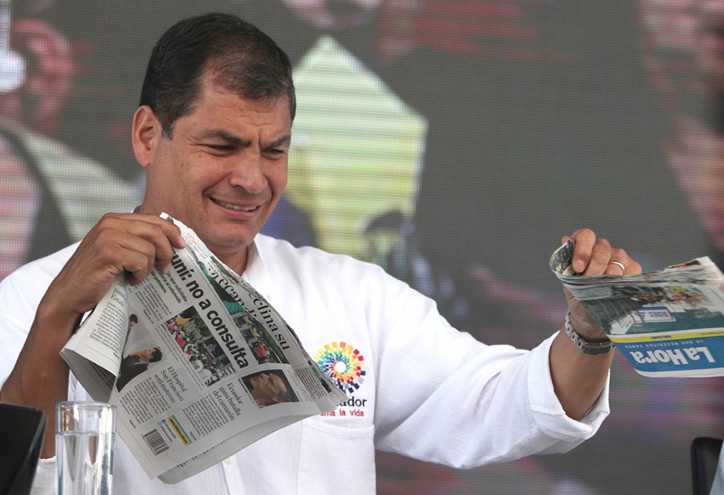Durante este periodo se persiguió a periodistas críticos, utilizando leyes y demandas judiciales para silenciar voces disidentes (caso El Universo, un periódico fue demandado y condenado a pagar una alta indemnización por difamación)[12].
