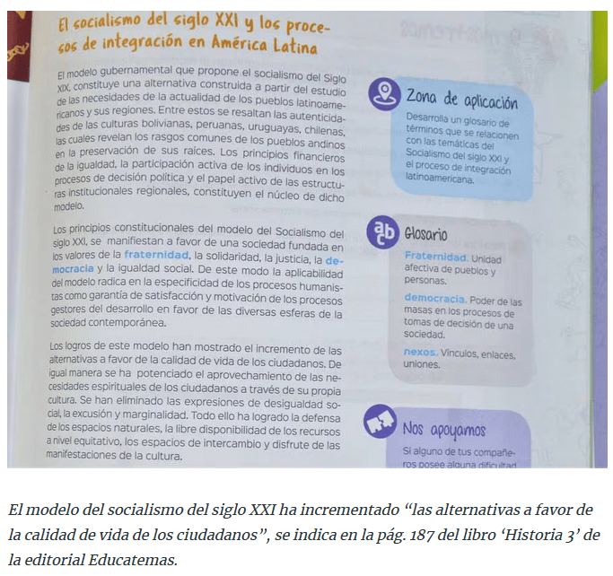 [11] Ideales de la revolución ciudadana se incluyen en libros escolares en Ecuador https://www.eluniverso.com/noticias/2019/04/28/nota/7303838/ideales-revolucion-ciudadana-se-ensenan-libros-escolares-ecuador/