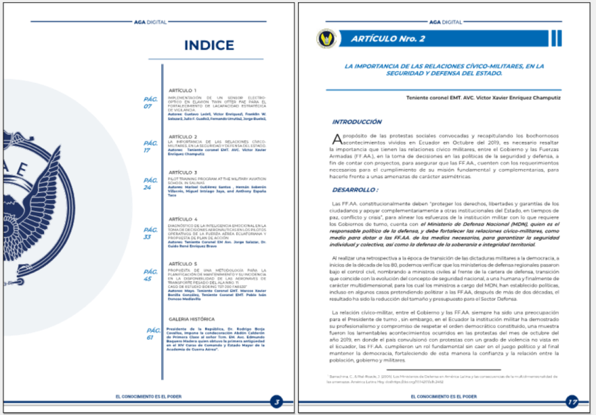 Artículo publicado en la Revista de la academia de Guerra Aérea de la Fuerza Aérea Ecuatoriana.