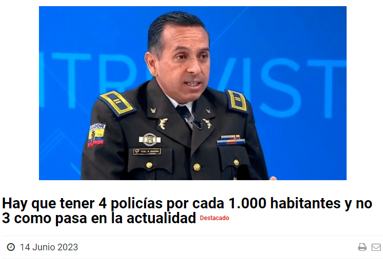 En una entrevista para Teleamazonas en el mes de junio del 2023, el general Roberto Zuleta, jefe de reclutamiento de la Policía Nacional, puso de manifiesto que,