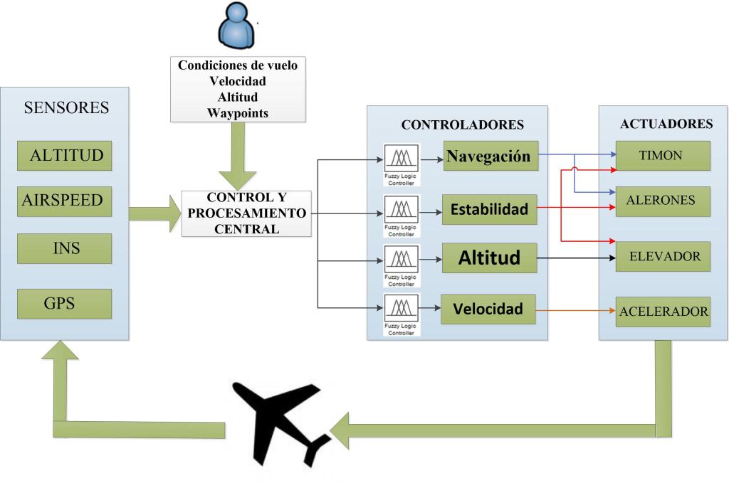 | Resumen. Los UAV (Unmanned Aerial Vehicles) han demostrado sus enormes capacidades en aplicaciones militares y civiles en los últimos años. Se han convertido en una herramienta indispensable en el ámbito de defensa, seguridad y apoyo al desarrollo de una nación. De igual manera el desarrollo tecnológico ha permitido que estas aeronaves vuelen de manera autónoma gracias a sistemas de control electrónicos llamados autopilotos. La arquitectura funcional del autopiloto presentado en este documento basa su funcionamiento en lógica difusa para el control completo de la aeronave, tanto en estabilidad, altitud, trayectoria, dirección y aceleración usando el mínimo de controladores posibles reduciendo el procesamiento computacional. El sistema que presentamos es puesto a prueba con múltiples horas de vuelo en distintas condiciones climáticas, los resultados son satisfactorios y el sistema se muestra prometedor. Tanto el hardware y software del sistema de control propuesto, como la aeronave, son de producción ecuatoriana | Abstract. Unmanned Aerial Vehicles (UAVs), also known as drones, have demonstrated their immense capabilities in both military and civilian applications over the past few years. They have become an indispensable tool in the fields of defense, security, and national development. Technological advancements have enabled these aircraft to fly autonomously using electronic control systems called autopilots. The functional architecture of the autopilot presented in this document is based on fuzzy logic for complete control of the aircraft, including stability, altitude, trajectory, direction, and acceleration, using the minimum number of controllers possible to reduce computational processing. The proposed system has been thoroughly tested through multiple hours of flight under various climatic conditions, yielding satisfactory results and demonstrating its promising potential. Both the hardware and software of the proposed control system, as well as the aircraft itself, are of Ecuadorian origin. |