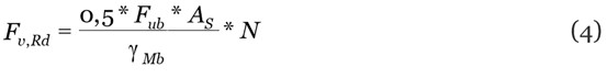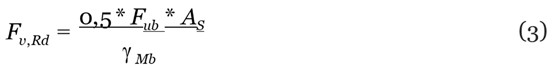 La fuerza resistente a cortante de la unión, para el tipo de tornillo empleado (NAS 517-3-9) sujeto al análisis está dada por la expresión mostrada en (3).