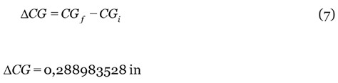 Cabe considerar, que la instalación del sensor electro-óptico provoca un movimiento en el centro de gravedad hacia la derecha, dicha variación se calcula en (7), mediante la diferencia del CG inicial con la aeronave en vacío y el nuevo CG.