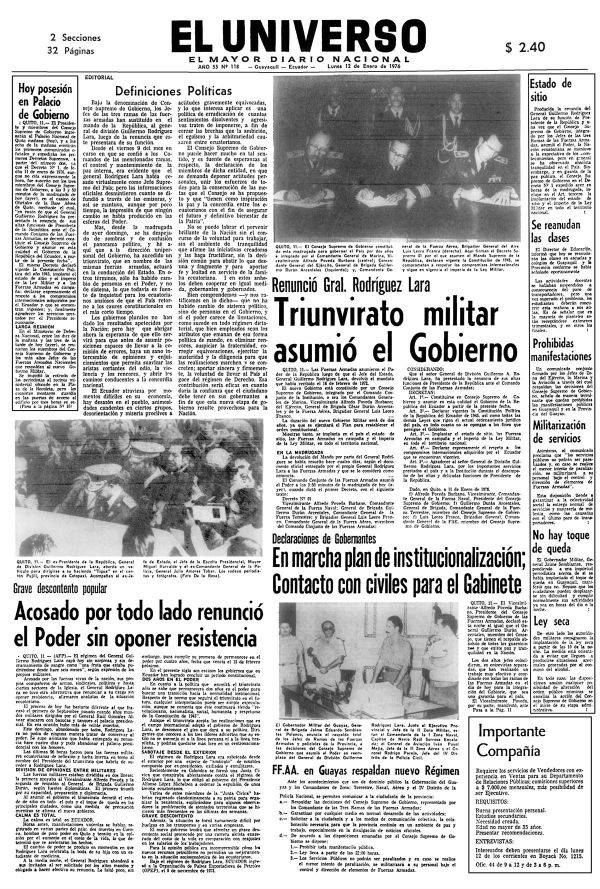 A continuación, se presentan los acontecimientos que motivaron al Consejo Supremo de Gobierno, derrocar la dictadura del General Guillermo Rodríguez Lara, en el año de 1976 (Juan Paz y Miño Cepeda, 2006):