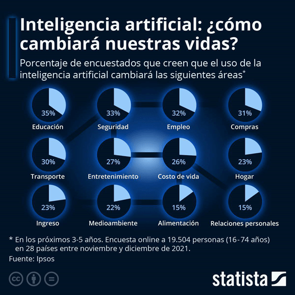 Resulta increíble la diversidad de aplicaciones y tareas que pueden y podrán hacerse en un futuro cercano. Un ejemplo del potencial de la IA, es la aplicación openIA ChatGTP, diseñada para mantener conversaciones y responder preguntas, utilizando técnicas de aprendizaje automático (Geographic, Preguntas y respuestas sobre ChatGPT la IA de moda, 2023).
