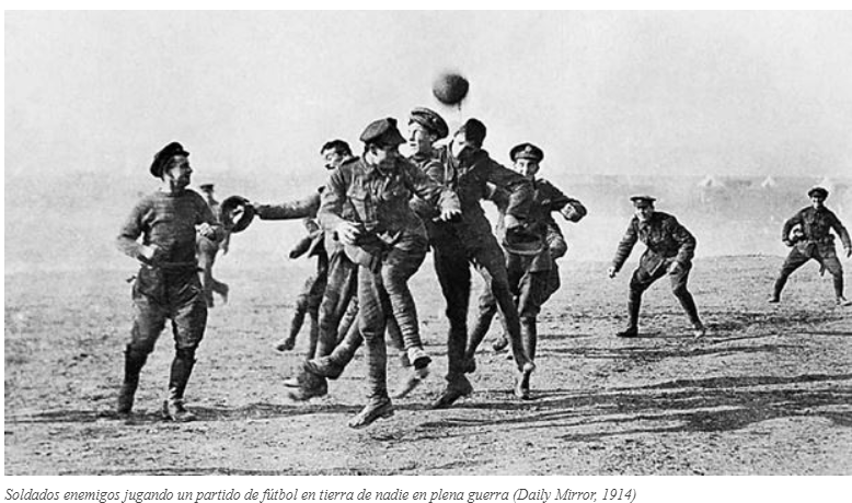 Unión que se manifestó con cánticos al unísono de villancicos y la camaradería en un partido de fútbol en los campos de batalla embarrados de lodo.